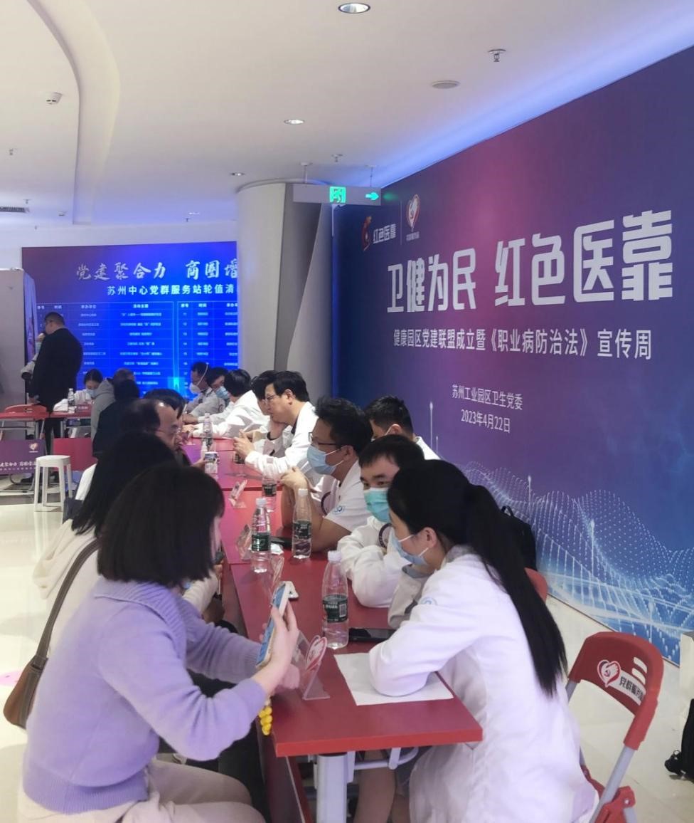 为深入贯彻落实党的二十大精神及习近平总书记关于卫生健康工作的系列重要论述和指示精神,推动落实党中央关于职业病防治工作的决策部署,苏州工业园区卫生党委于422日开展卫健为民 红色“医靠”——健康园区党建联盟成立暨职业病防治法宣传周启动仪式。苏州市独墅湖医院党委书记侯建全参加启动仪式,呼吸内科、心血管内科、普外科等12个科室的专家受邀为广大市民提供专家义诊特色健康服务。