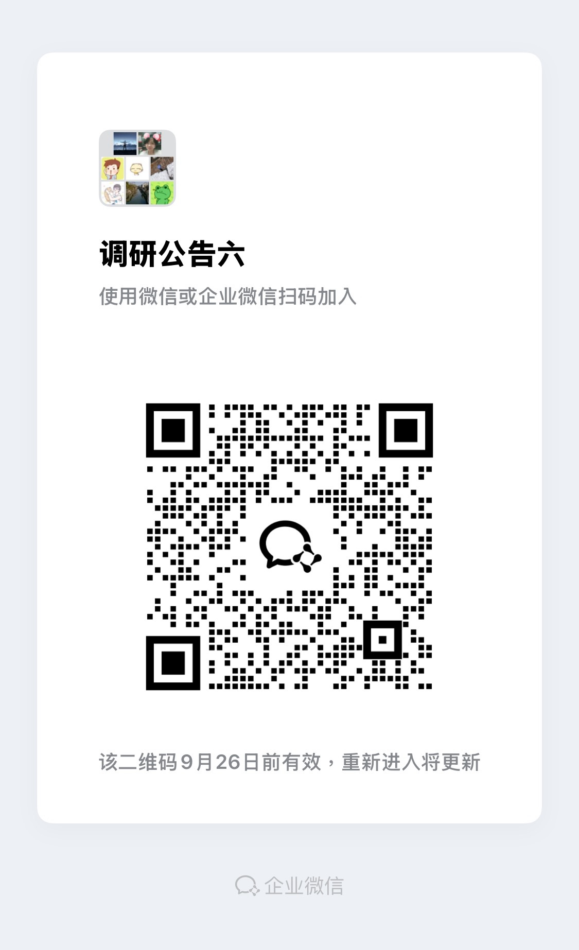 9. 各报名公司扫码加入调研公告群(群二维码见附件5),并修改备注名为报名公司名称,方便后续通知参加介绍会。