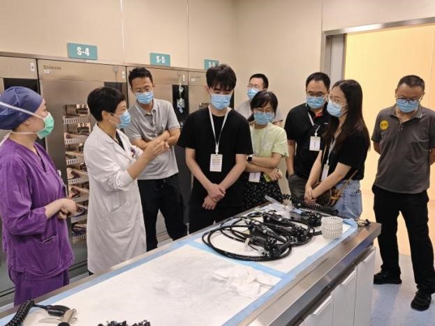 本次培训采用“理论教学+典型案例教学+模拟执法教学”三位一体的培训模式,依托苏大附四院作为实训医院,开展医疗机构现场带教实践。培训采取分组同步轮转的方式,四组人员按不同路线依次参观并听取讲解。教学范围涵盖血液净化中心、消毒供应中心、内镜中心和临检中心等重点部门,内容聚焦科室消毒隔离、病原微生物实验室生物安全和医疗废物处置等院感防控关键环节,并针对学员提问进行了现场解答。通过“沉浸式执法现场体验”帮助学员近距离了解传染病防治的实际工作流程,强化卫生监督执法直观认识,进一步提升了执法与应急处置能力。