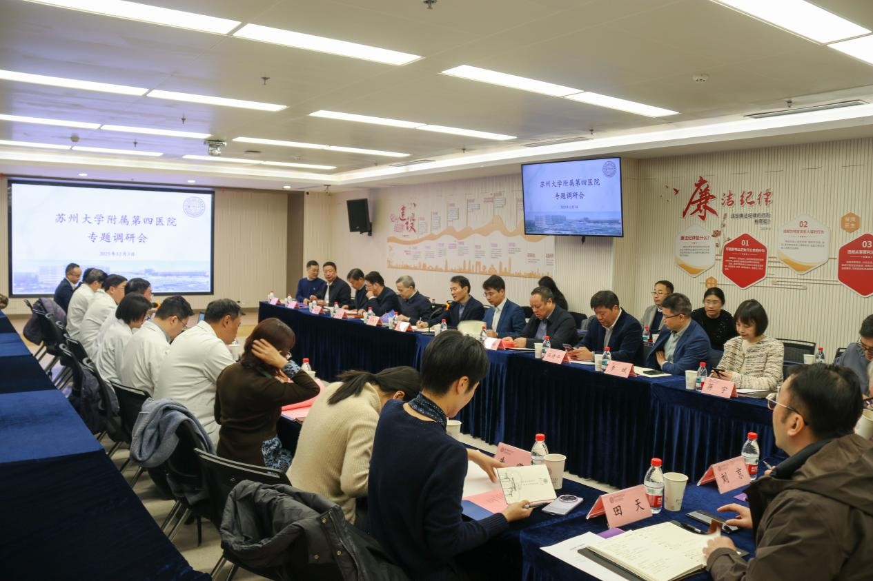 苏州医学院党委书记王欣,执行院长李斌,医学院领导班子成员及相关职能部门领导;苏大附四院党委书记侯建全,院长方琪,医院领导班子成员及相关职能部门负责人参与调研。