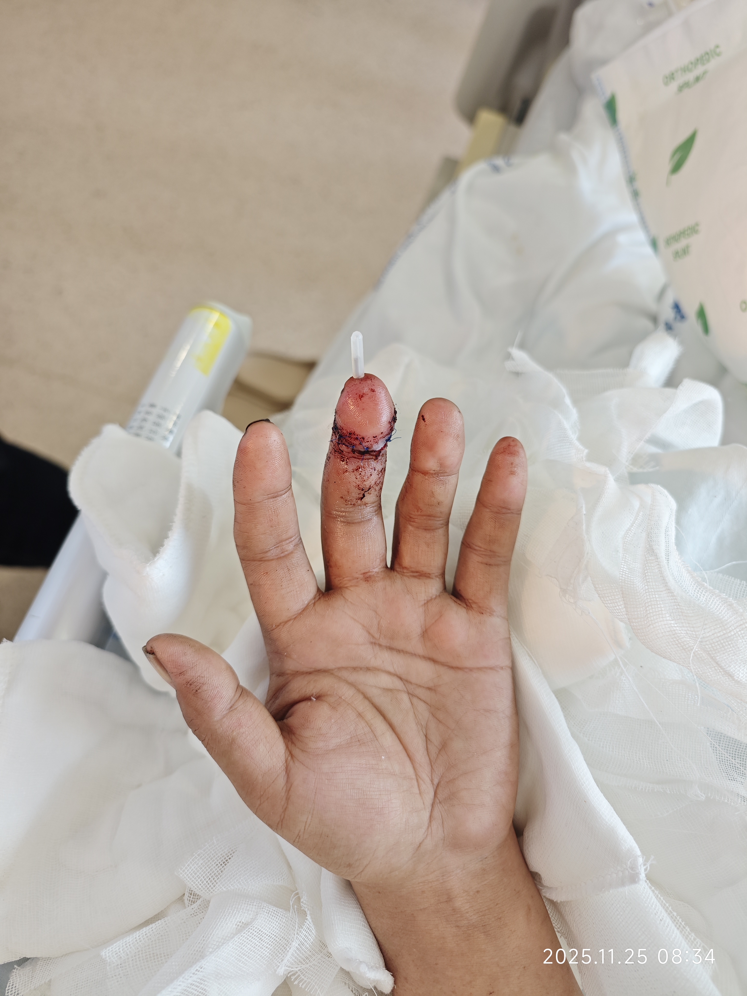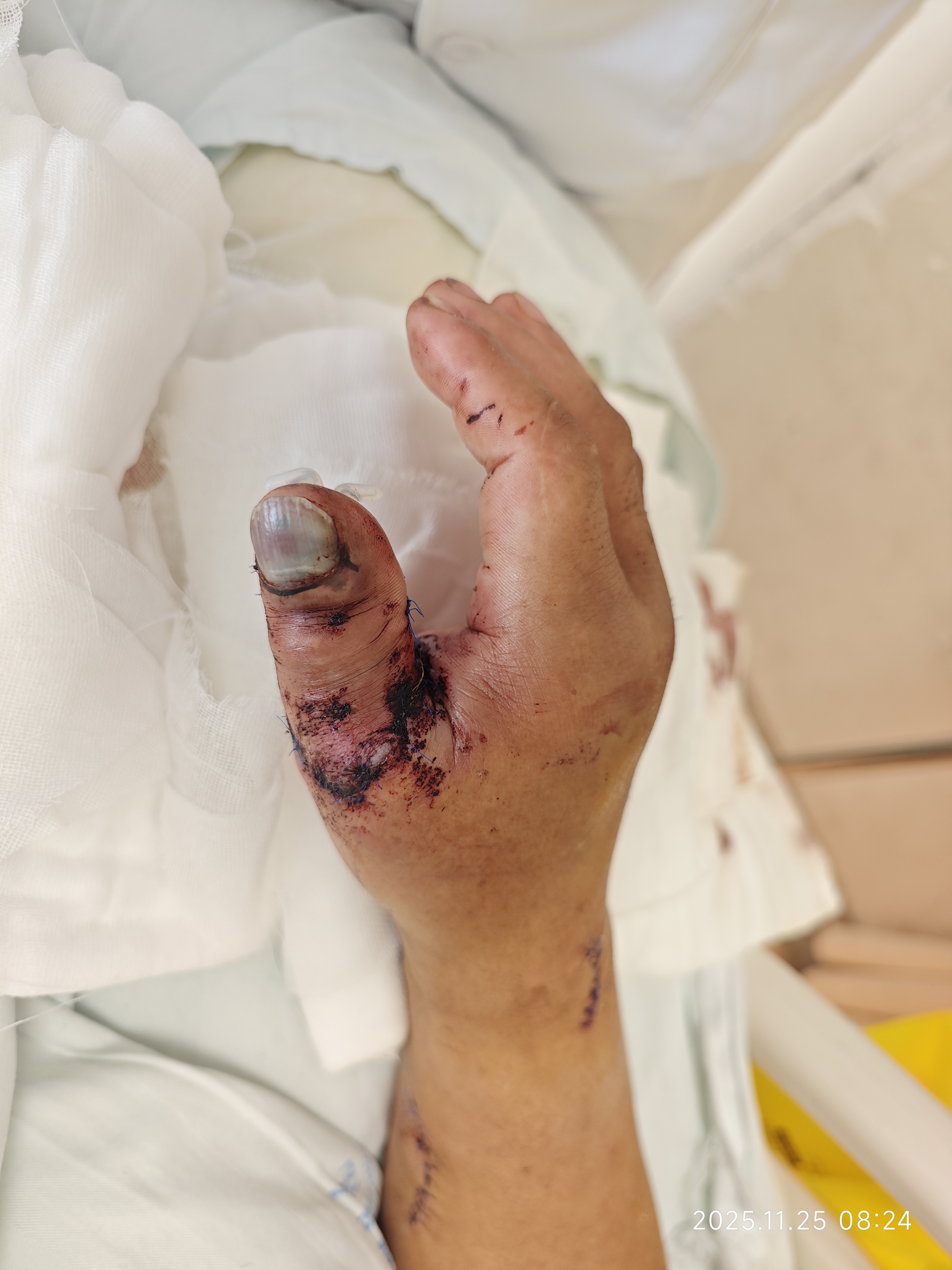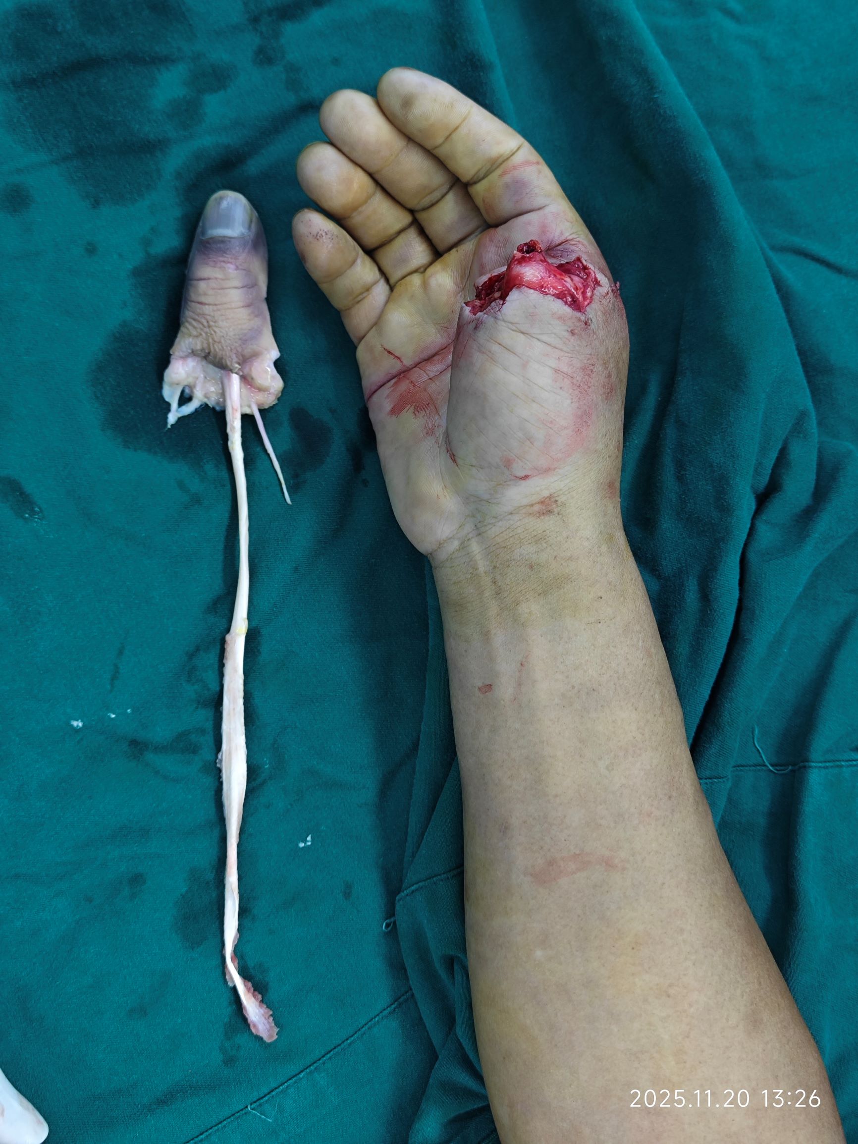 图片可能会引起不适:患者手指离断图片1  患者手指离断图片2